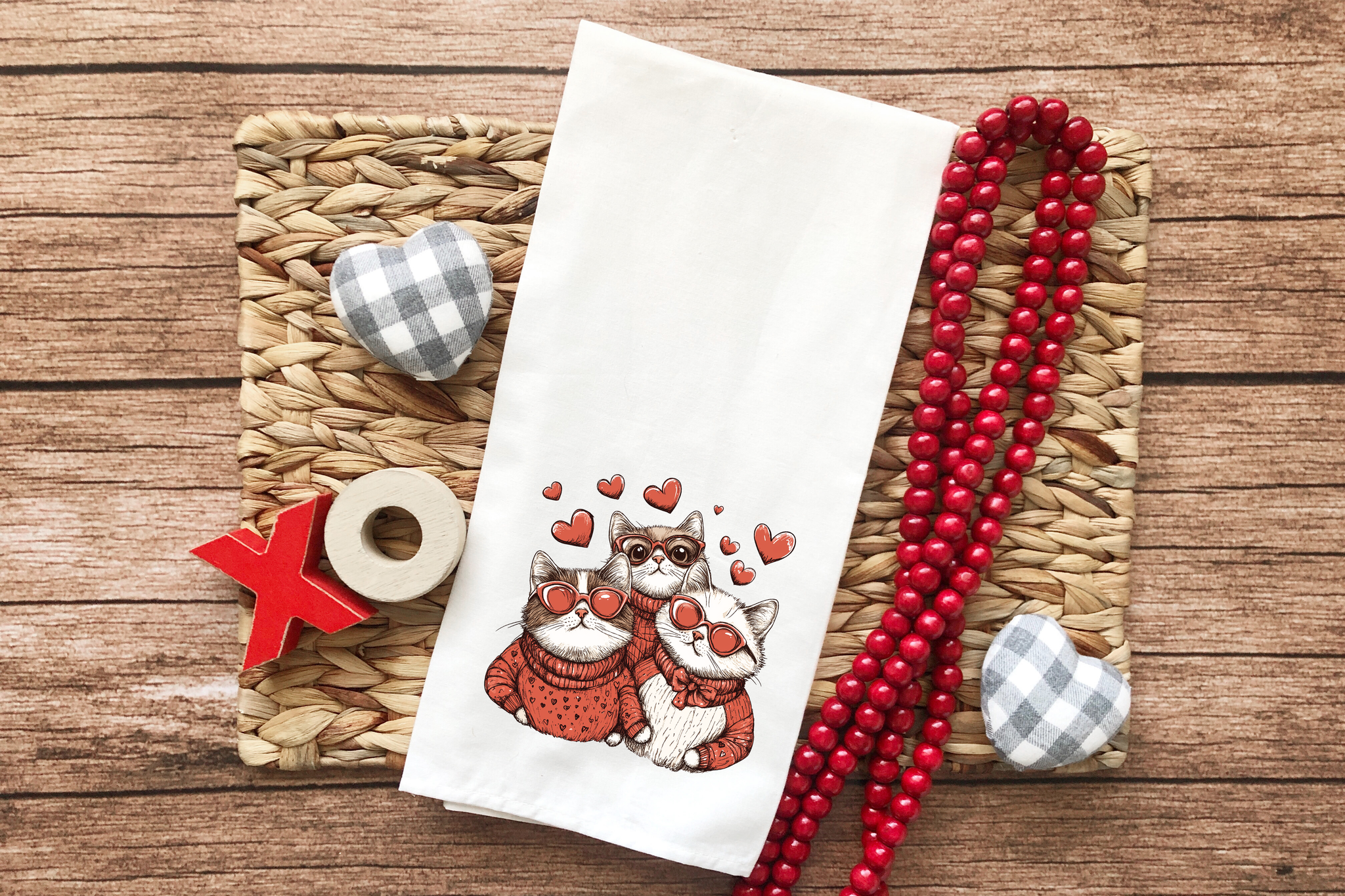 Valentine Cats” Flour Sack Towel – Cute Kitty Love Kitchen Towel – Cat Lover Gift – Romantic Farmhouse Décor