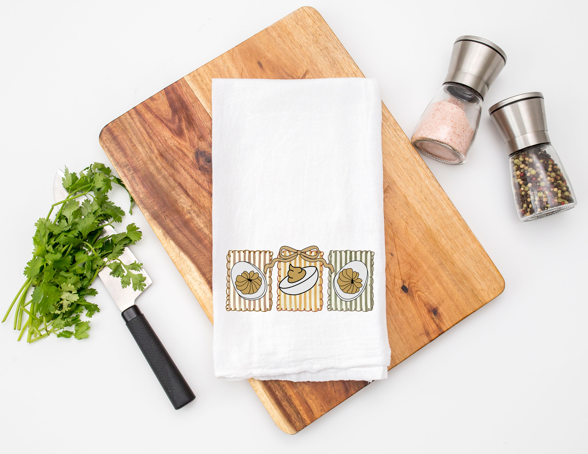 Deviled Eggs Flour Sack Towel – Funny Kitchen Towel, Southern Kitchen Decor, Hostess Gift, Farmhouse Dish Towel